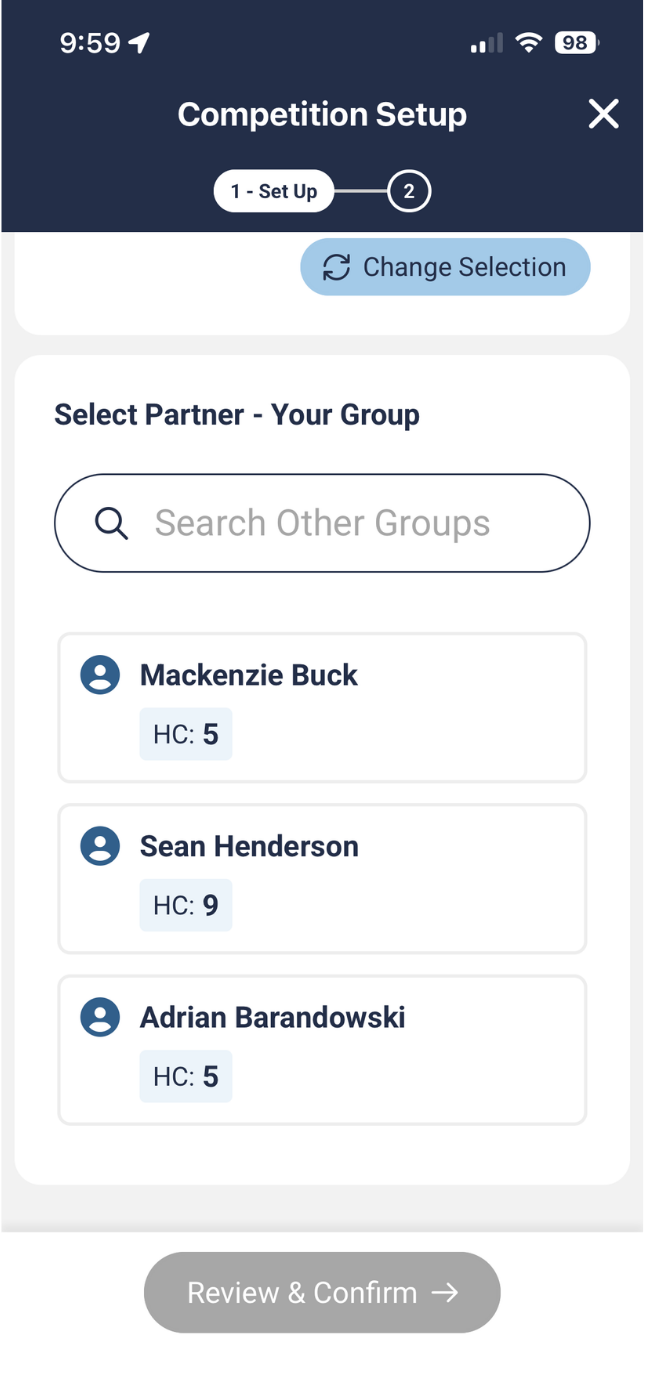 Note: If the starting hole is not correct then it probably is due to the fact the timesheet group name has a reference to a miss matched starting hole. Simply select the correct starting hole or in the score entry interface, swipe across until you get to the correct starting hole.