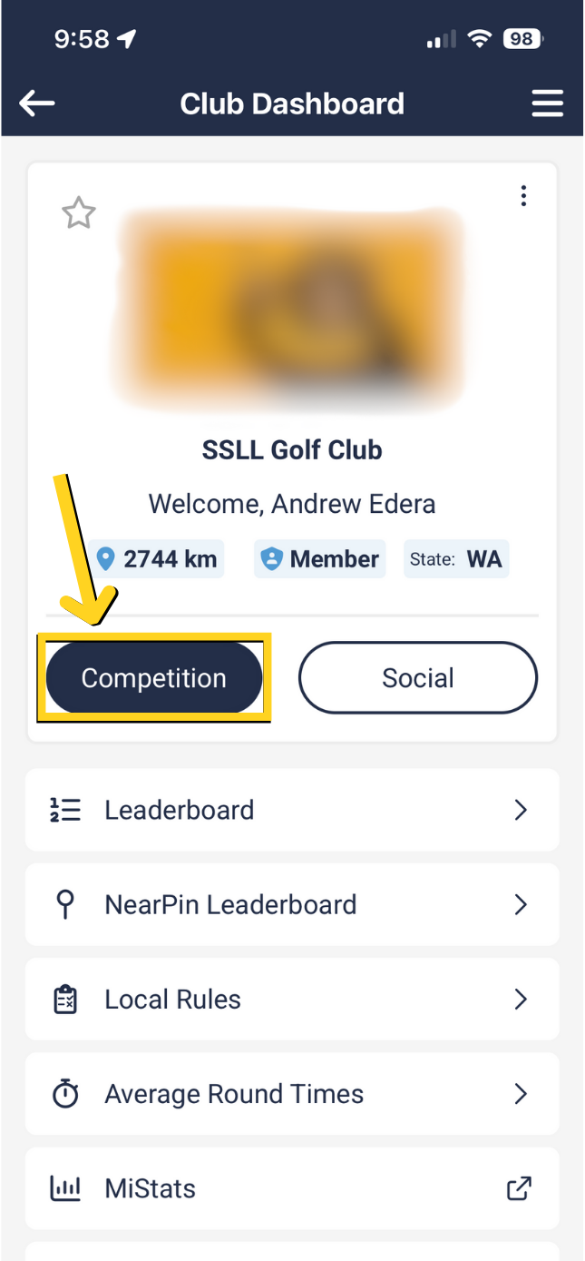 Press 'Member Login' and enter your club Membership Number and Password from your login to the club's web site.
