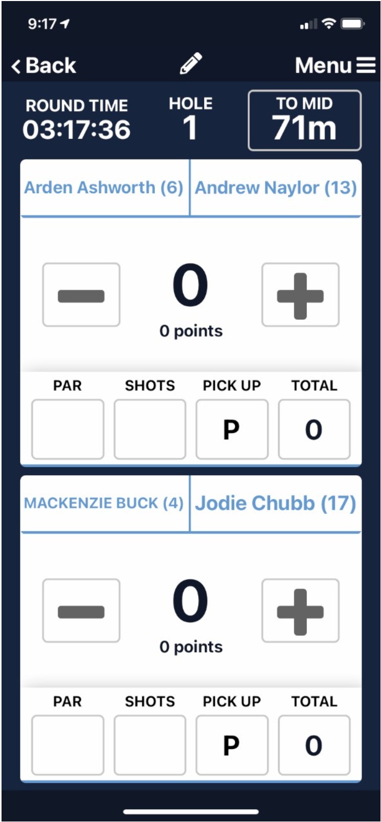 Fourball (or 2BBB) competitions when run in-conjunction to a singles match, Miscore App user will score as if scoring for a normal singles competition ie Stableford, Par and Stroke.