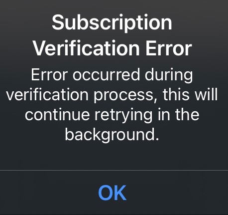 Subscription Verification errors can be resolved by ensuring that a valid payment method is applied to your App Store account.