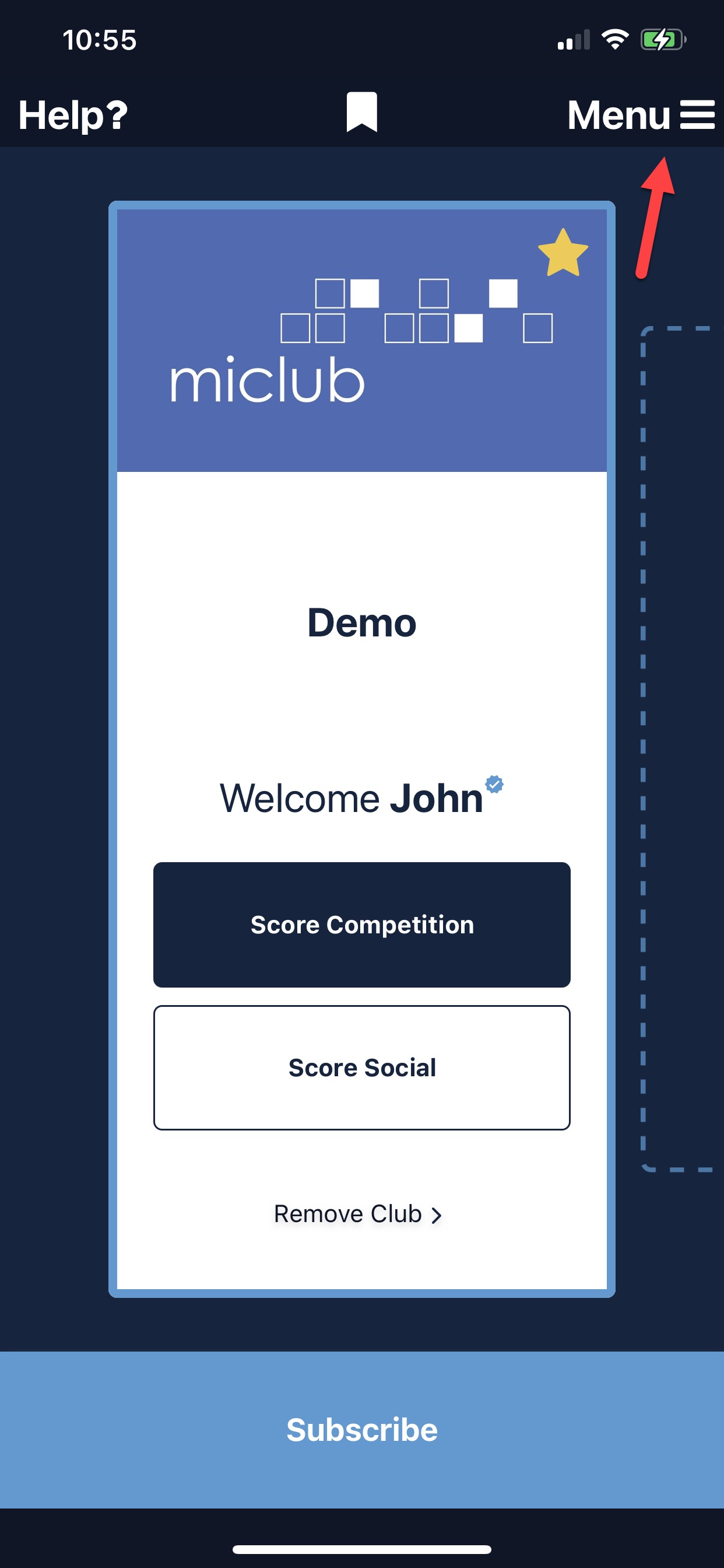 Select 'Menu' on the top right corner.