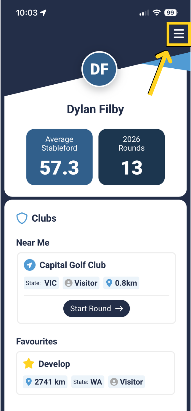Press the three lines at the top right