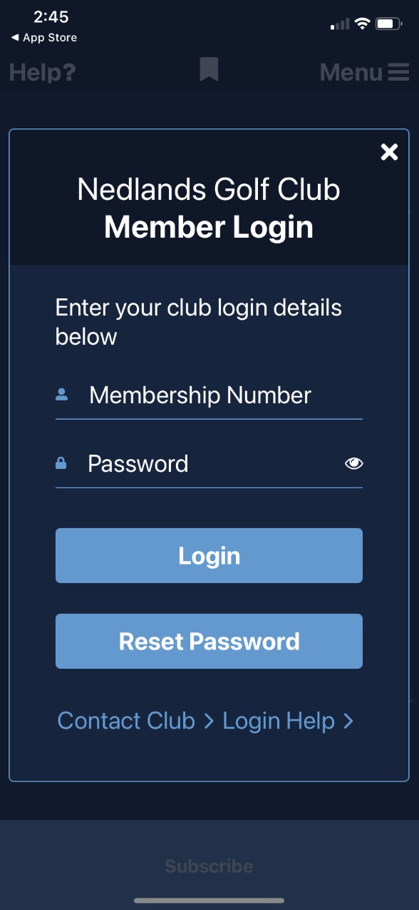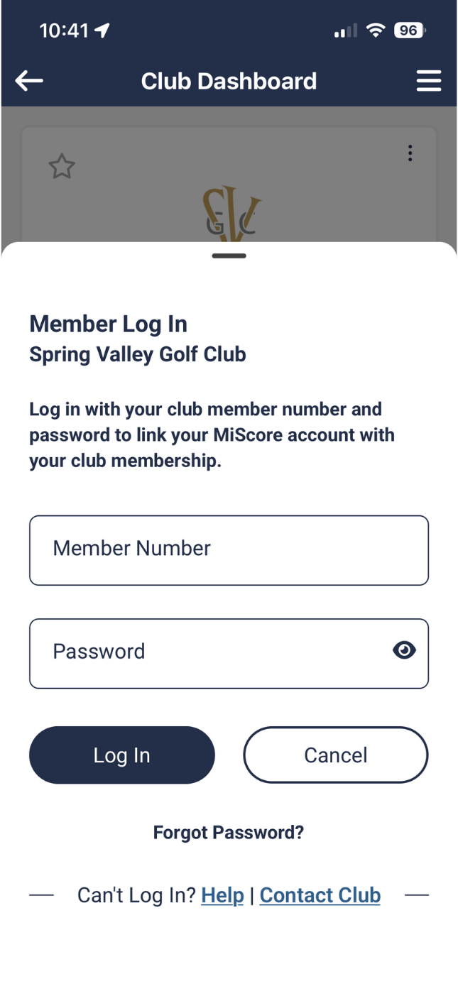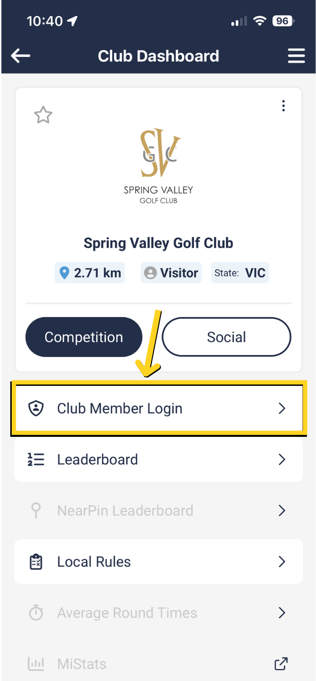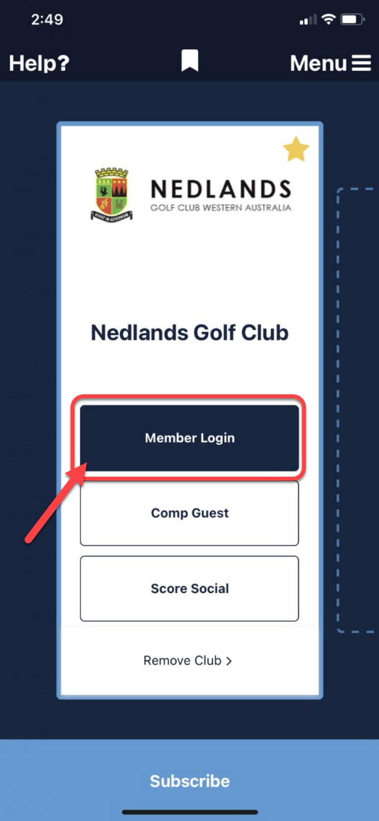 Once you add your home club, select the 'Club Member Login' button.