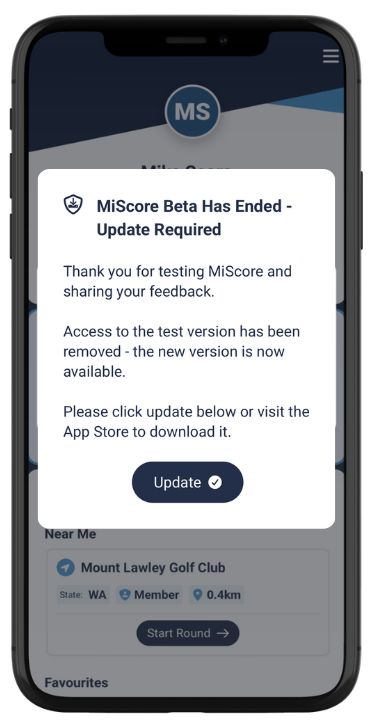 To access Beta as a registered tester you’ll need to ensure your MiScore app is updated to the latest available version. Beta is only compatible with version 1.7.0 and higher.